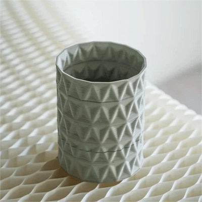 “Using recycled plastics and FGF printing technology, we were able to customize vase of varying heights that are both beautiful and practical,” explains Vans. “We reused 1,000KG of recycled home appliances and electronic equipment plastics.”